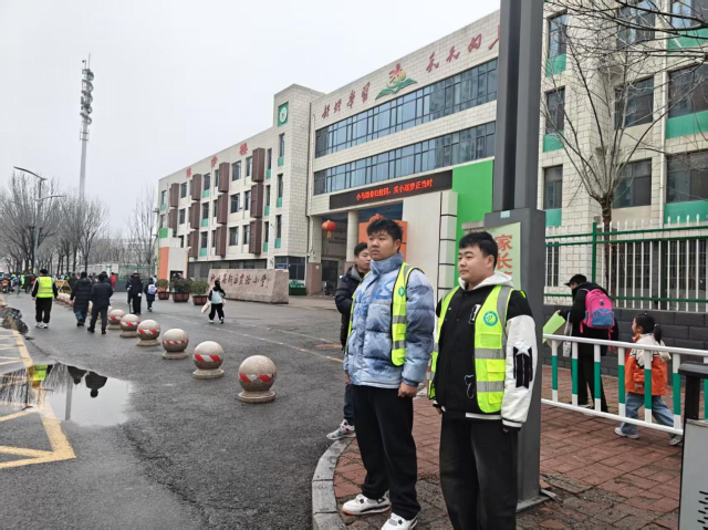 3月5日清晨,志愿者们身着统一志愿服装准时到达指定护学岗位,在老师与交警的指导下,迅速投入交通引导与秩序维护工作中。志愿者们精神饱满、认真负责,耐心引导车辆减速慢行、有序停放,提醒过往行人注意安全,全力疏导校园周边交通。